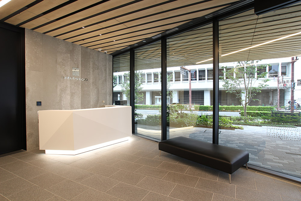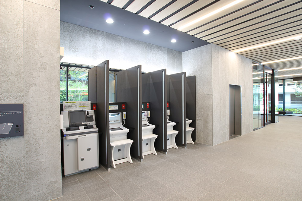 受付とATM を設置し、本店らしい重厚感と地域とのつながりを発信する空間です。