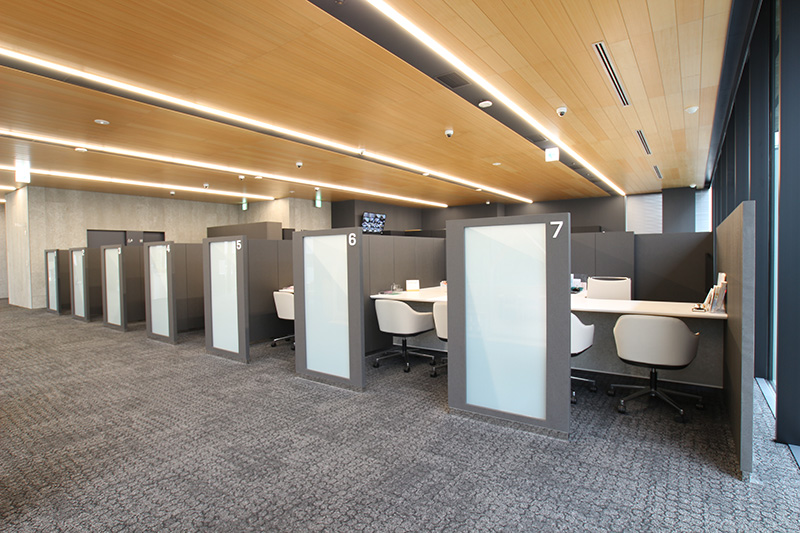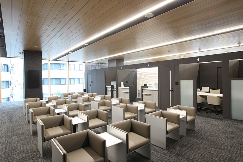 1~3階に本店営業部を配置し、2階を中心に多様なニーズに応えるバンキ