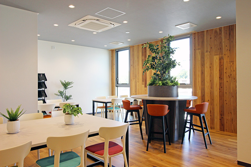 の温もりと地域の魅力を感じられる空間に仕上げました。創エネとしても太陽光パネルを設置し『ZEB』の認証を取得。