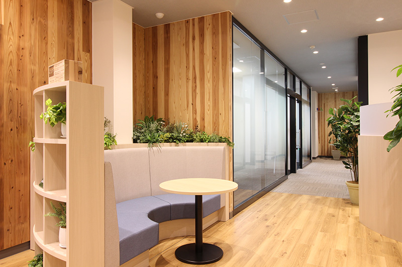 配置することで、開放感と親しみやすさを演出。将来的な業務形態の変化にも対応できる、柔軟性の高いレイアウト
